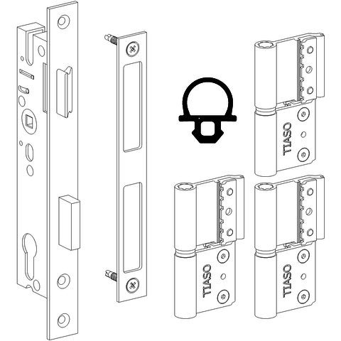 Kit of 3 hinges for aluminum door. 1 leaf with lock