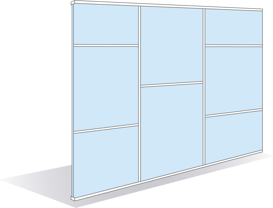 Module pour cloison à trame horizontale, vitrée toute hauteur de la gamme J AZ STRUCTURE sur ossature aluminium à remplissage verre.