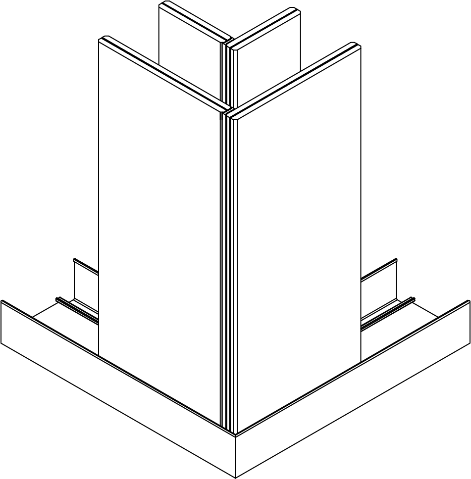 Jonction d’angle à 90° en configuration bord à bord collé.