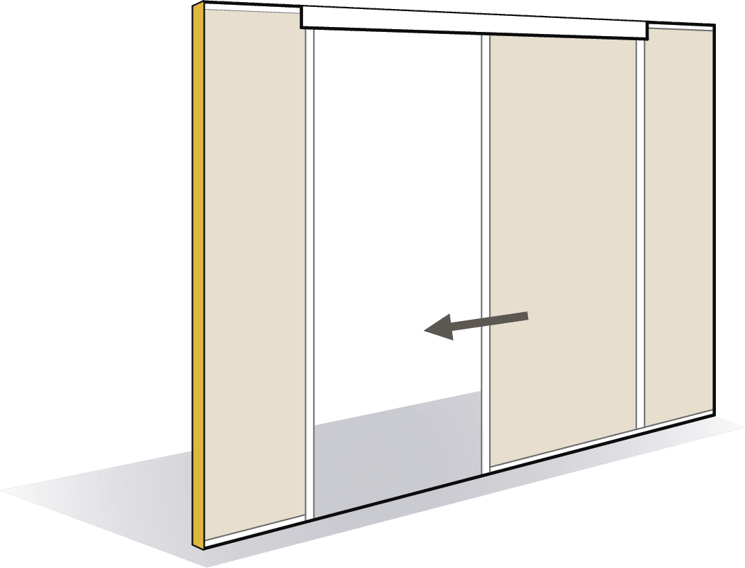 Ce module de passage toute hauteur pour porte coulissante simple vantail en applique de la gamme AZ ESSENTIEL se construit à partir d’une structure en profilés aluminium assemblés par équerre. Des capots de finition clipsés sur les montants viennent habiller le chant intérieur du passage. Les portes bois ou cadre aluminium sont suspendues sur un rail coulissant caréné de largeur adaptée à la porte choisie.